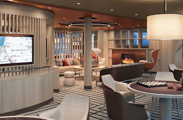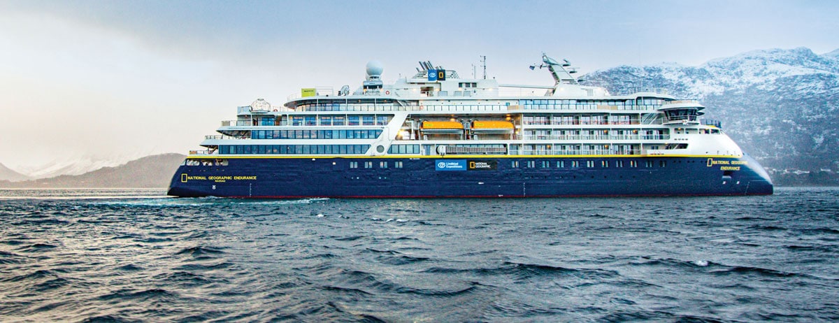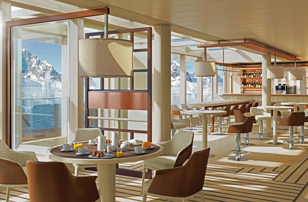 For this 20-night cruise, Lindblad Expeditions takes care of all the cruise logistics and expedition programming. Most of the 69 outside-facing cabins on the Endurance feature small balconies with floor-to-ceiling sliding doors that bring in the spectacular views and ample natural light. An open bridge features comfortable spaces to sit, enjoy the view, drink your coffee, and chat with the Captain and the ship’s officers.