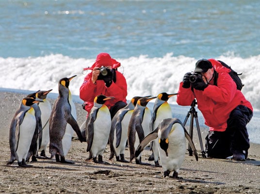 Our Antarctica cruise isn’t limited to the White Continent. We will also sail to breathtaking South Georgia Island, the final resting place of Sir Ernest Shackleton, the renowned Antarctic explorer. The island teems with Antarctic wildlife including a vast penguin colony, home to tens of thousands of king penguins. After the solar eclipse, we’ll stop in the Falklands, islands that boast a wide array of seabirds, including albatross and king cormorants, plus large colonies of rockhopper and Magellanic penguins.