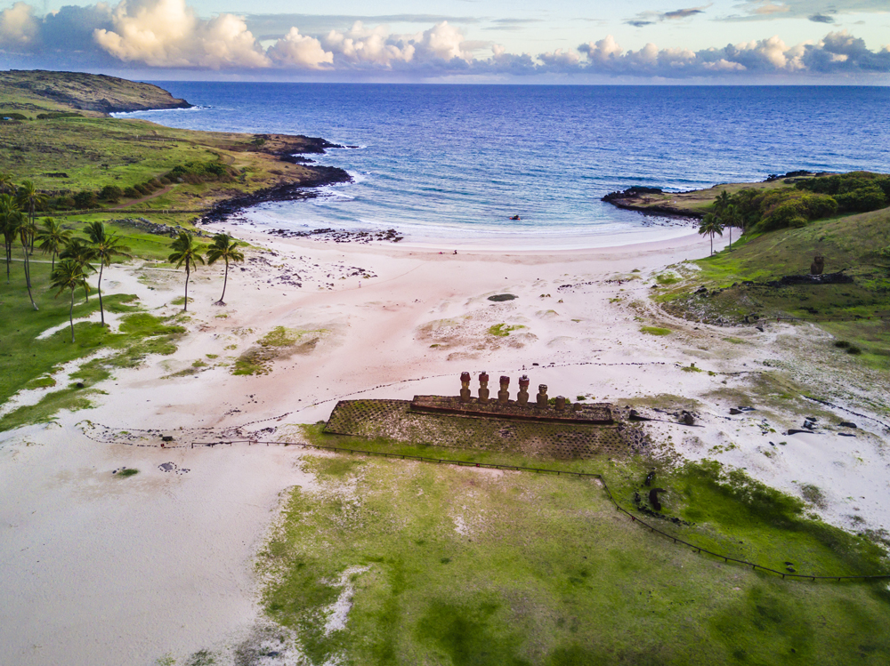It’s another full morning of fascinating explorations. Te Pito Kura,” the Navel of Light,” is home to the largest moved and erected moai (now partly demolished) brought from the Rano Raraku quarry. At Papa Vaka, there are impressive petroglyphs depicting ocean life. And the moai of Ahu Nau-Nau and Ature Huki overlook beautiful Anakena, the island’s only natural sand beach. Spend the rest of your day relaxing at the beach, exploring the main village of Hanga Roa, or enjoying horseback riding, diving, snorkeling and bike riding — or strolling to the artisanal market. And at sunset, join us for a farewell dinner at the hotel.
